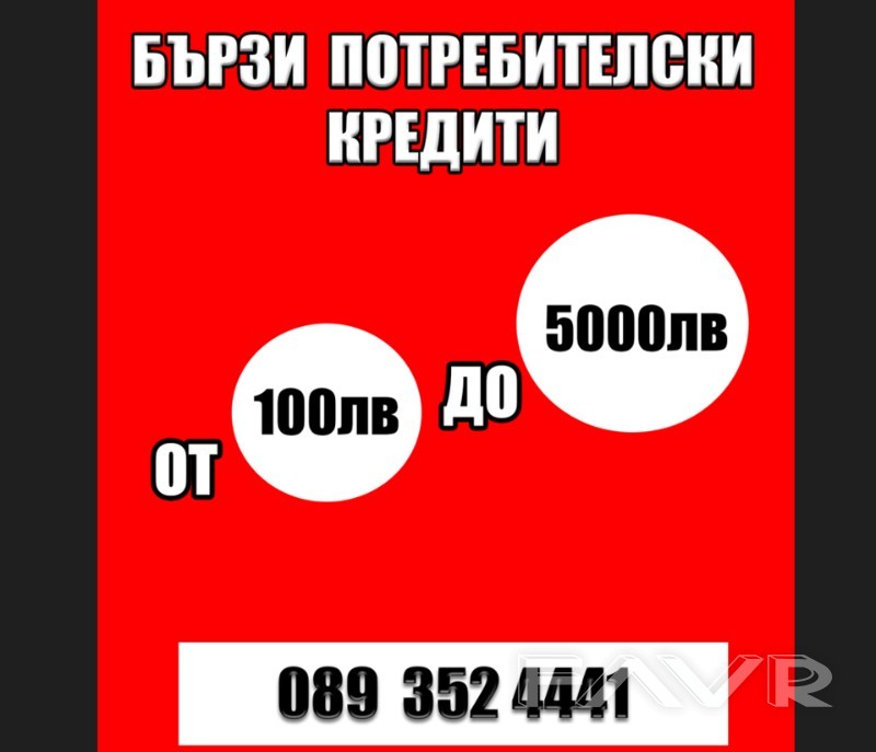 Нуждаете се от пари за ремонт, почивка, събитие или нещо друго? Вземете потребителски кредит от 100 до 5000 лева на телефон 089 352 4441.
