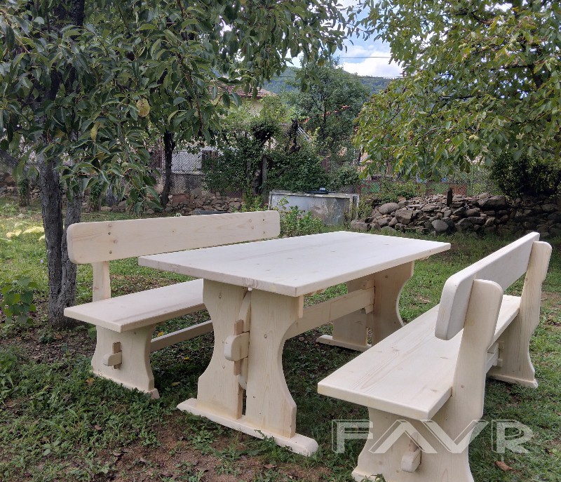 Пример: маса +две пейки с облегалки с размер: 700/1500 от чамов материал струва 1500 лв