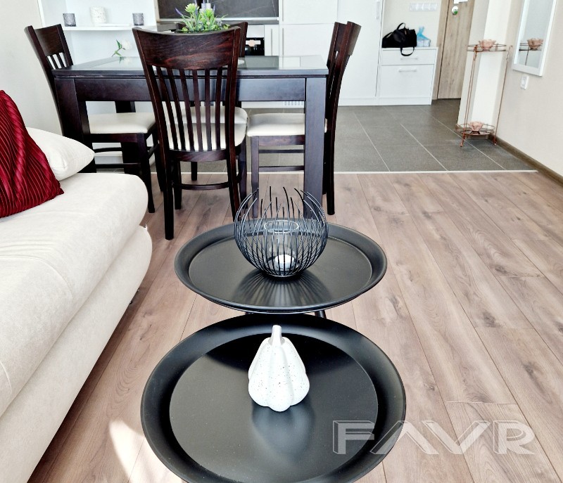 Апартаментът се предлага напълно оборудван със спално бельо, чисти хавлиени кърпи, посуда за хранене и готвене, пособия за почистване, декорация, както и с градински мебели на терасата.
