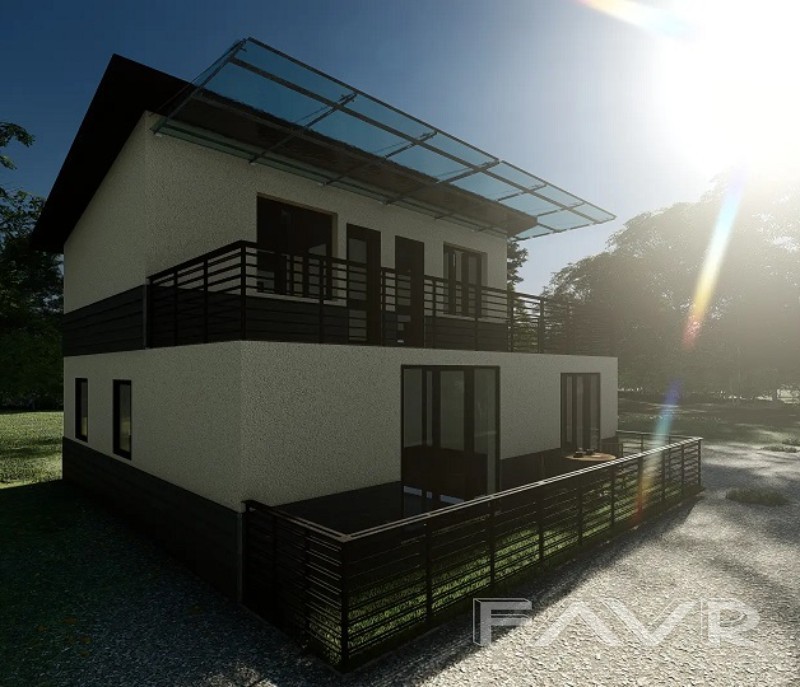 Компактните размери на къщата дават възможност да се построи дори върху по-малък парцел.
