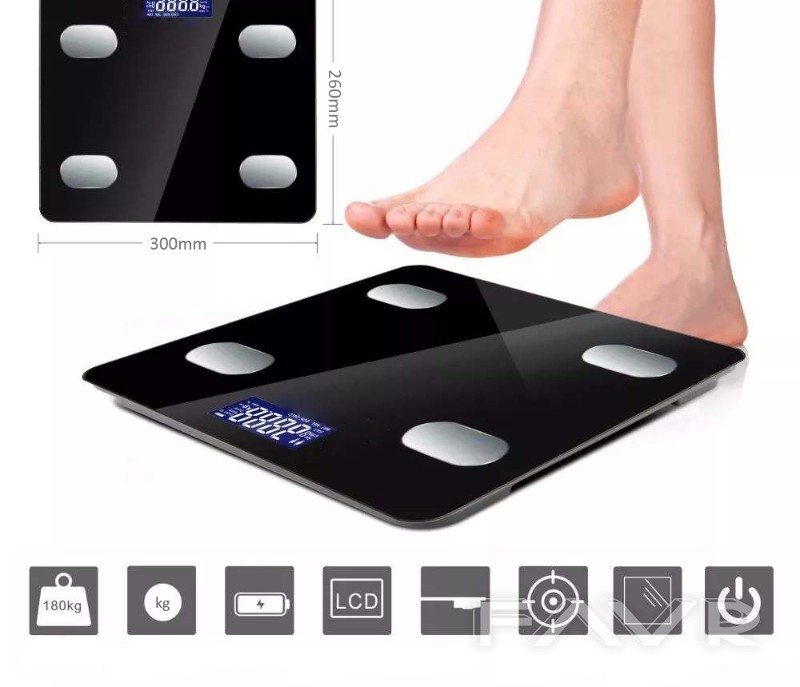 Иновативен smart електронен кантар с дисплей. В кантара имате вграден цифров дисплей, на който се визуализират телесното тегло, температурата на помещението, и нивото на батерията. Разбира се, устройството има множество други функции като например измерване на телесни мазнини, измерване на водно съдържание, измерване на костна маса, на мускулна маса и други.