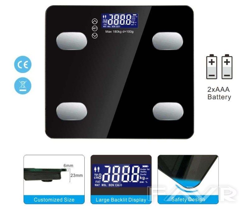 Уредът се свързва чрез Bluetooth с приложение на телефона, благодарение на което можете да получите цялата необходима информация, както и да я съхраните. Максималното тегло, което може да поеме е 180 кг. Изработен е от закалено стъкло.