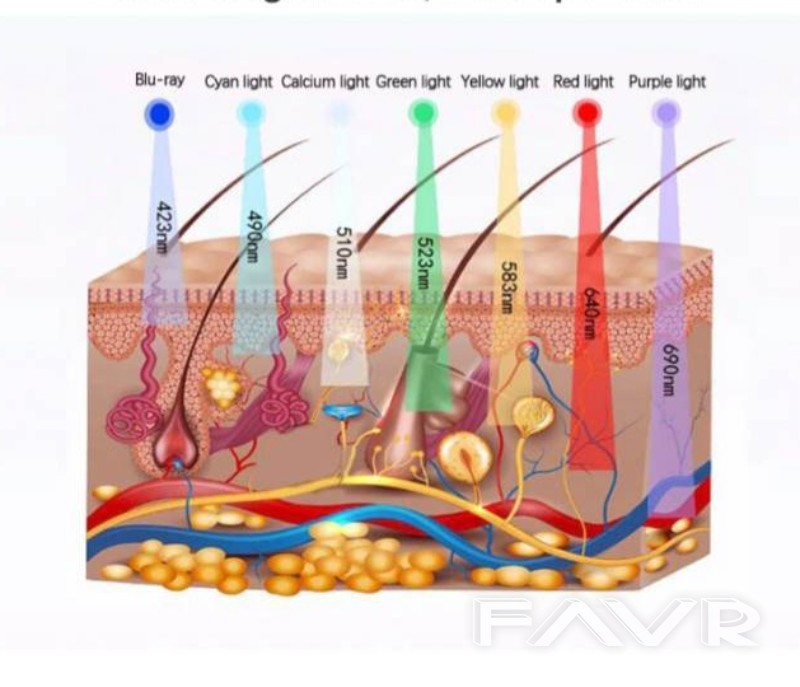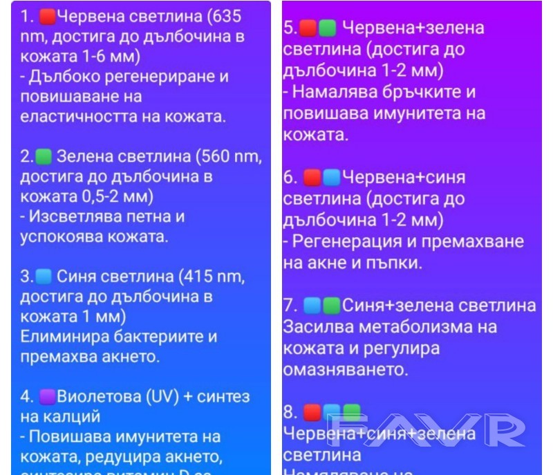 1. Червена светлина (635 nm, достига до дълбочина в кожата 1-6 мм)