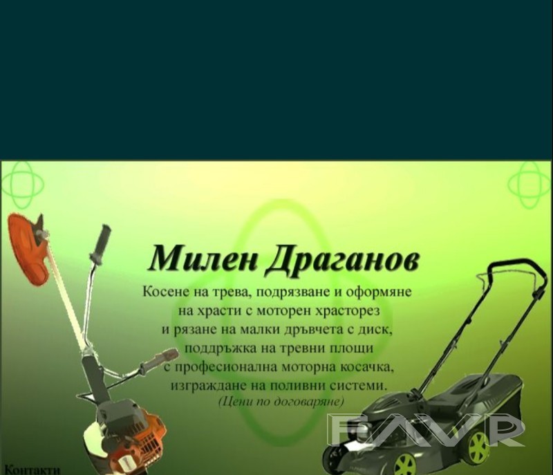 Предлагам поддържане и косене на тревни площи,поддръжка на храсти и засаждане на външни растения,растения и дървета за вашата градина,дом,офис.
