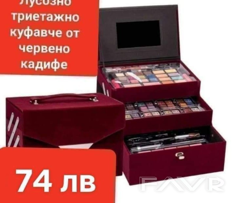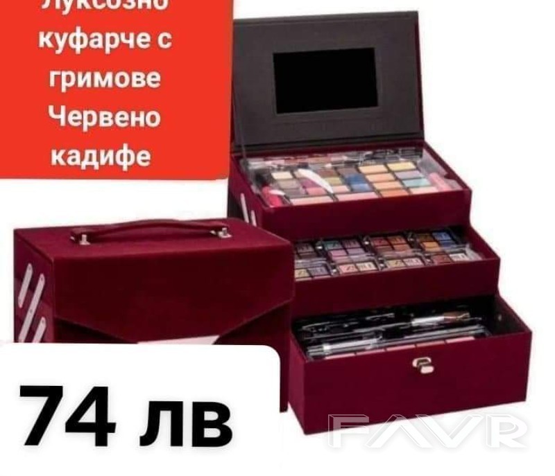 Луксозно куфарче с гримове с немско качество ЧЕРВЕНО КАДИФЕ