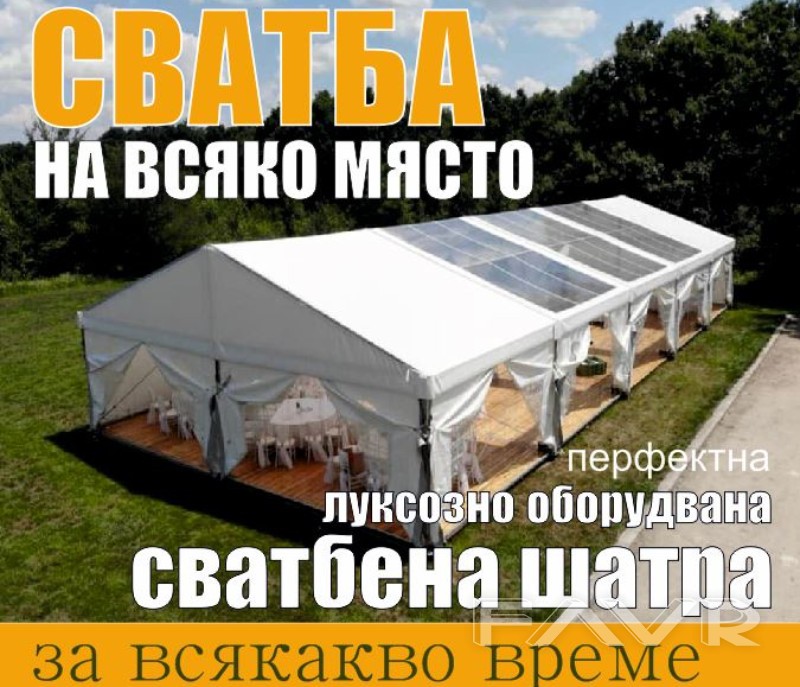 Монтажа се извършва в деня преди събитието. Цената на шатрата се определя на база квадратен метър. Оборудването в шатрата и транспорта се заплащат отделно.