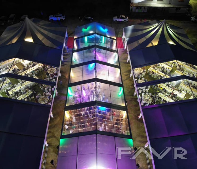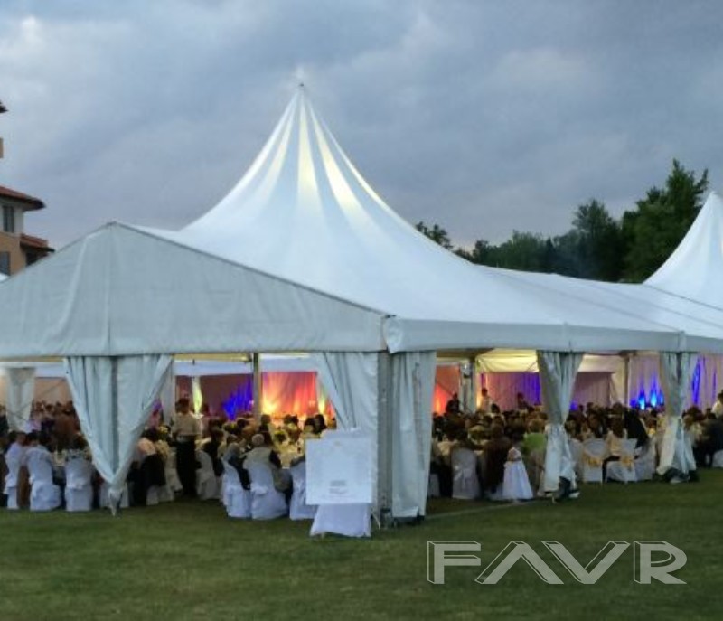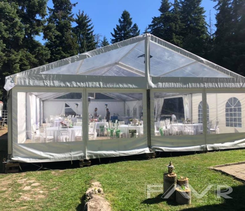 Шатрата която предлагаме е модулна и може да бъде изградена с размери подходящи за вашето събитие. Тя може да бъде съобразена според броя на Вашите гости и мястото с което разполагате така, че да получите максимален комфорт, без да е прекалено голяма или тясна, а точно съобразена със събитието, което планирате.