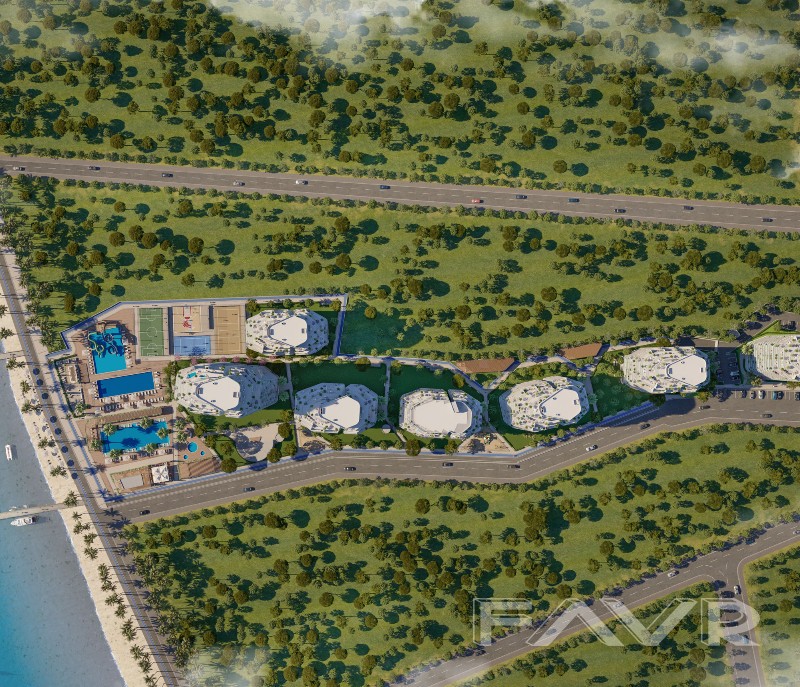 В местност с удобно жизнено пространство, в съседство с морето - всички сгради са на пешеходно разстояние до плажа. Проектът е на 45 минути разстояние с кола до летището на Северен Кипър.