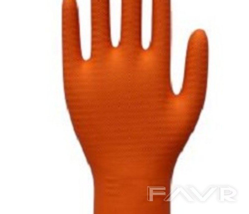 Оранжеви,индустриални, нитрилни ръкавици с релефна текстура