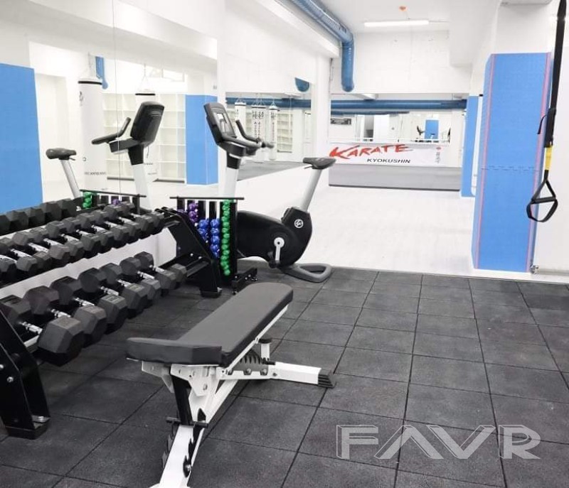 Помещението е голямо, разделено в две отделни зали с огледала с обща площ от 213 кв.м. Има подвижни преградни стени с огледала, които позволяват обособяване на по-малки отделни пространства в самите зали. Залата разполага с рекооператор за вентилация, 2 климатика, видеонаблюдение, СОТ.