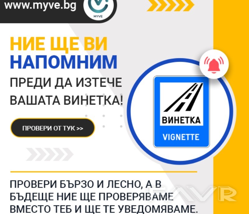 роверете кога изтича винетката на колата на следния линк https://myve.bg/vinetka Това е само една от много усулги, които предлага платформата. В допълнение се проверява за валидни застраховка Гражданска отговорност технически преглед. Ние ще Ви напомним преди да изтекат. Очакват ви още много полезни функции, които да ви помагат при поддръжката на колата.