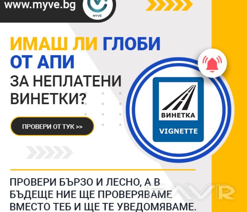 https://myve.bg/proverka_api - Безплатна услуга за проверка на глоби/фишове от АПИ/БГ Тол за ползване на пътната мрежа без винетка. След първоначалната проверка, системата автоматично започва да следи за нови нарушения и изпраща известие.Ние следим вместо Вас и Ви информираме при необходимост. Не е необходимо Вие да извършвате проверки