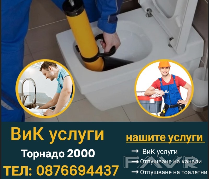 Нашите ВиК екип от аварийни техници с дългогодишен опит и квалификация извършват ВиК ремонти и услуги свързани с отпушване на канали, шахти , тоалетни, водостоци, улуци, водосточни тръби, мивки, душ кабини,писоари, вани, басейни и други канализационни системи и съоръжения в гр.София и областта. Дежурните ни екипи реагират своевременно и максимално бързо денонощно 24/7, в удобно за вас време.