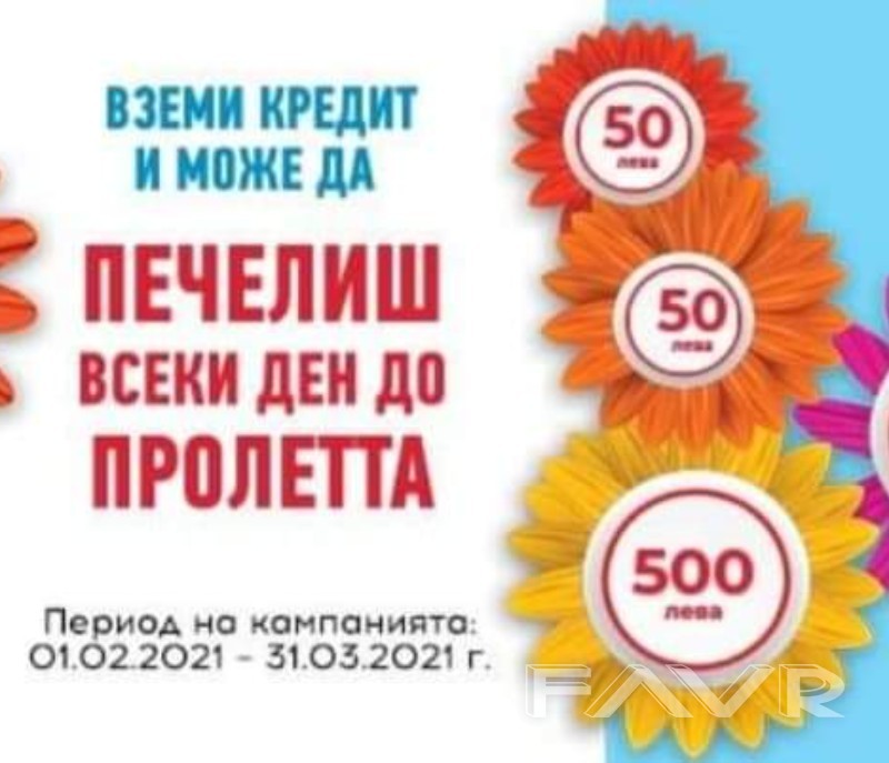 СПЕЧЕЛИ ПАРИЧНА НАГРАДА от 500 лв. Ако изтеглиш кредит в периода от 01.02.2021 до 31.03.2021.