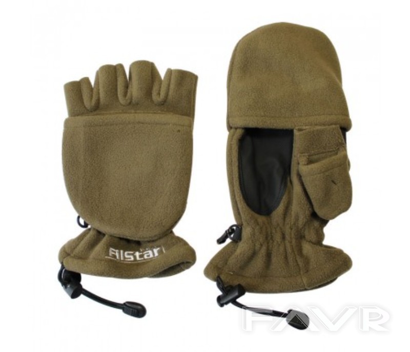 Меки поларени ръкавици с капачета за палците и пръстите, които се сгъват за пълна свобода при дейности изискващи сръчност. Дланите са с противоплъзгащи платки за здрав захват, а еластичните китки с връзки осигуряват стабилно пристягане и комфорт през студените дни. Идеални за лов, риболов, туризъм и активен престой на открито.