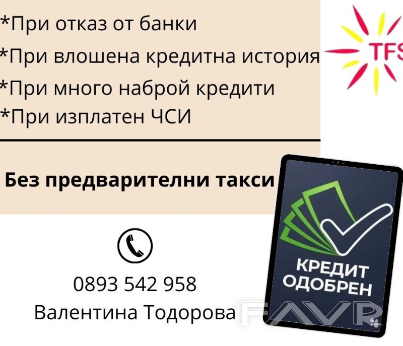 Съдействие за кредит. За гр. Варна и гр. София. Обадете се на тел. 0893542958 или Вайбър - ФК Валентина Тодорова.