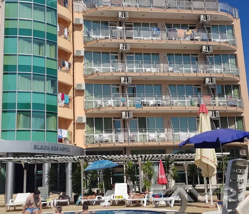Хотелът за продажба е 3-звезден напълно обзаведен хотел с пълен комплект оборудване, разположен в западната част на най-големия и популярен морски курорт в България, Слънчев бряг, построен през 2006 г. и реновиран през 2015 г. Заобиколен от други хотели, той има изключително местоположение, плажът е много близо до портите му и същевременно е близо до гори и гори. Черноморският комплекс е един от малкото хотели, през които преминава терапевтичен поток, който има лечебно и лечебно въздействие върху белите дробове и благосъстоянието на човека. Хотелът е с обща застроена площ от 2800 м2 и 2641 м2 площ на парцела. Настаняване (43 помещения): - 29 двойни стаи, всяка с поне едно допълнително легло (2 + 1); - 2 апартамента - с две допълнителни легла и кухненски бокс (4 + 2); - 12 студия - с допълнително легло (3 + 1); Стаите са оборудвани с 32 "телевизори, климатик / отопление, телефони (PBX), мини барове, бани с душ кабина и сешоари, балкони, легла 100 / 200см или двойни легла 200/200 см, сгъваеми фотьойли.