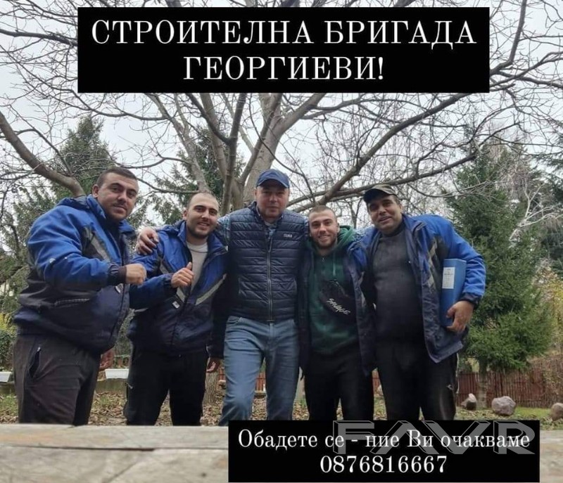 Бригада с дългогодишен опит в областта на строителните дейности, предлага ширака гама от строителни услуги. За всичко извършено се дава пълна гаранция. Работи се в уговорени срокове и цени. Без скрити такси.