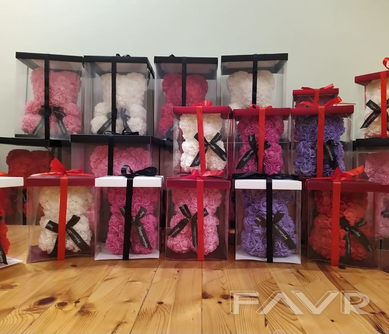 Ръчно изработени МЕЧЕТА от вечни рози. Предлагаме ги в два размера и няколко цвята: 1. Малък размер (около 25см)-50лв. [бяло, лилаво, червено, светлорозово, тъмнорозово]; 2. Голям размер (около 40см)-70лв. [бяло, розово, червено]. Получавате своето мече опаковано в луксозна кутия с панделка. Мечетата вече са изработени и налични така, както ги виждате на снимките. Подходящи са за всеки повод и за всеки(мъже, жени и деца). Изпращането може да се осъществи на същия ден ако поръчката е направена до 16.30ч. (само за делничен ден). За поръчка може да пишете на лично съобщение или да звъннете на посочения телефон. 088 939 0439. https://www.facebook.com/podarakportret/
