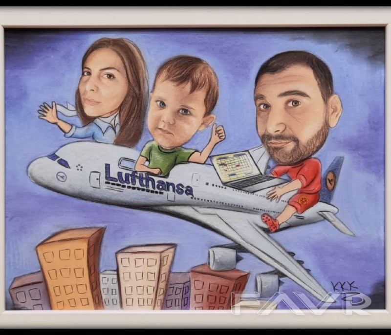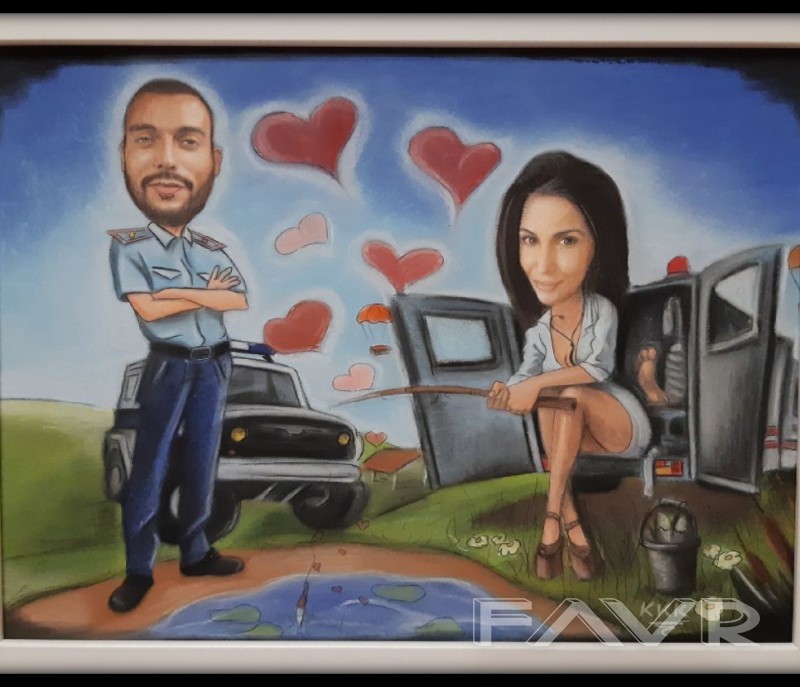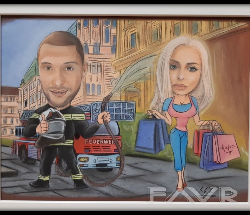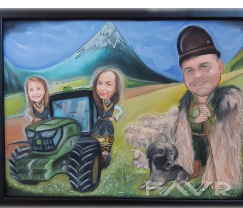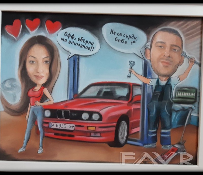 Ако търсите интересен и запомнящ се подарък или просто искате да украсите дома си, нашето предложение е точно за вас. Изработваме портрет по снимка или лека карикатура/ШАРЖ/. Споделете с нас идеите си или потърсете предложение от нас. Необходимо е снимките, които ни изпращате да бъдат с висока резолюция. Рисунките са ръчно изработени със сух пастел. Възможни размери за портрет са: 1. А3 формат (43см X 30см)-90лв. до 2 лица, 2. А4 формат (30см Х 21см)-70лв. (до 2 лица, за повече се оскъпява); 3. Малък формат(10х15см)-35лв. (само 1 лице). Възможни размери за лека карикатура/шарж/ са: 1. А3 формат(43см Х 30см)-120лв. (до 2 лица, за повече се оскъпява); 2. А4 формат(30см Х 21см)-90лв. (до 2 лица, . Получавате готовата картина завършена с рамка. Необходимо време за изработка-7 работни дни. Изпращаме с доставчик по ваш избор с опция преглед. Доставката е за ваша сметка. Снимките, които желаете да нарисуваме за Вас, изпращайте на лично съобщение. тел.: 0878019249, Mira