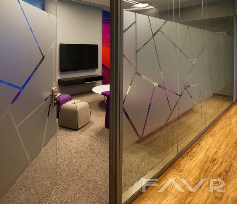 Матиране на витрини и прозорци с пясъкоструйно фолио с фрост ефект.
