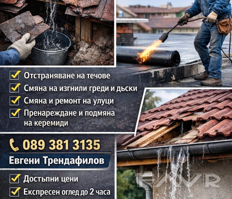 Имате проблем с покрива? Течове, разместени керемиди, стара хидроизолация или нужда от цялостен ремонт?