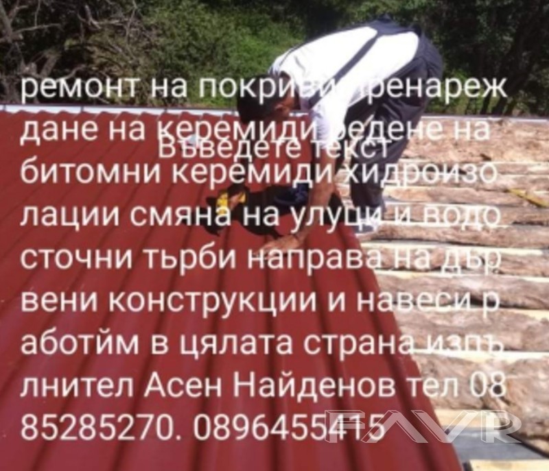 Ремонт на покриви пренереждане на керемиди редене на битомни керемиди хидроизолации смяна на улуци и водосточни тръби