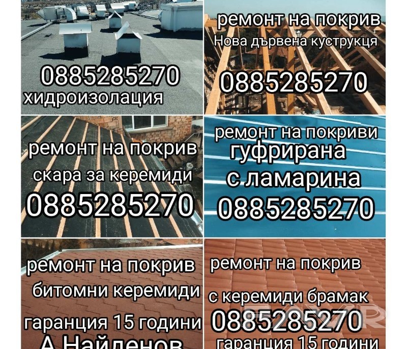 Ремонт на покриви цени по всеки джоб за оглед можете да пишете на вайбъра от снимката или на другия вайбър от самата обява. И ви молим при обаждане кажете къде сте видял обявста