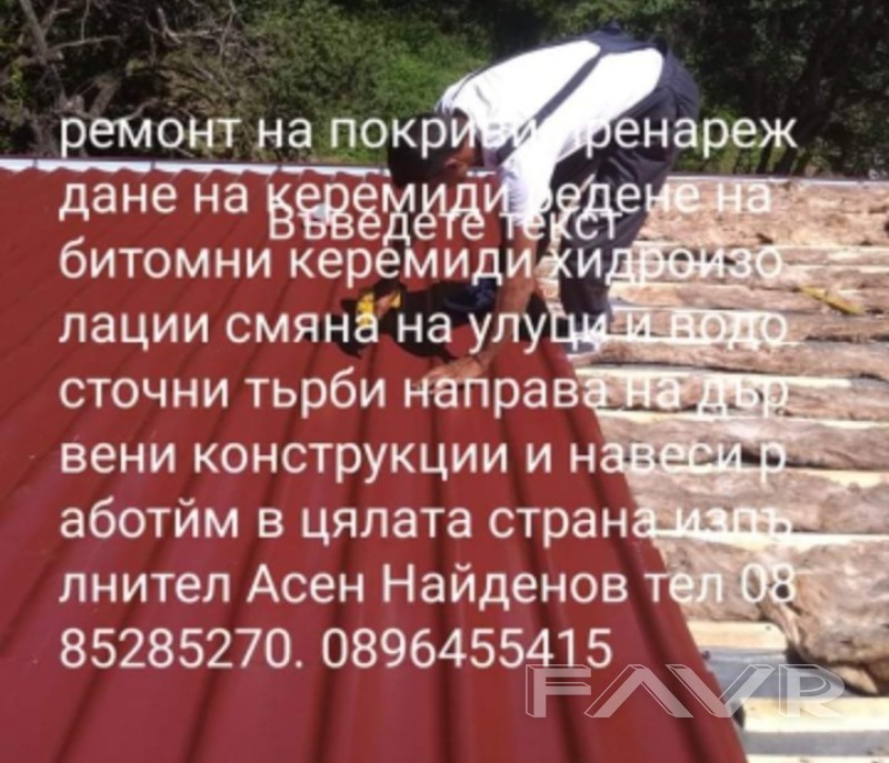 Ремонт на покриви пренереждане на керемиди редене на битомни керемиди хидроизолации смяна на улуци и водосточни тръби гаранция за качество