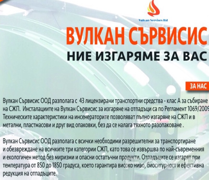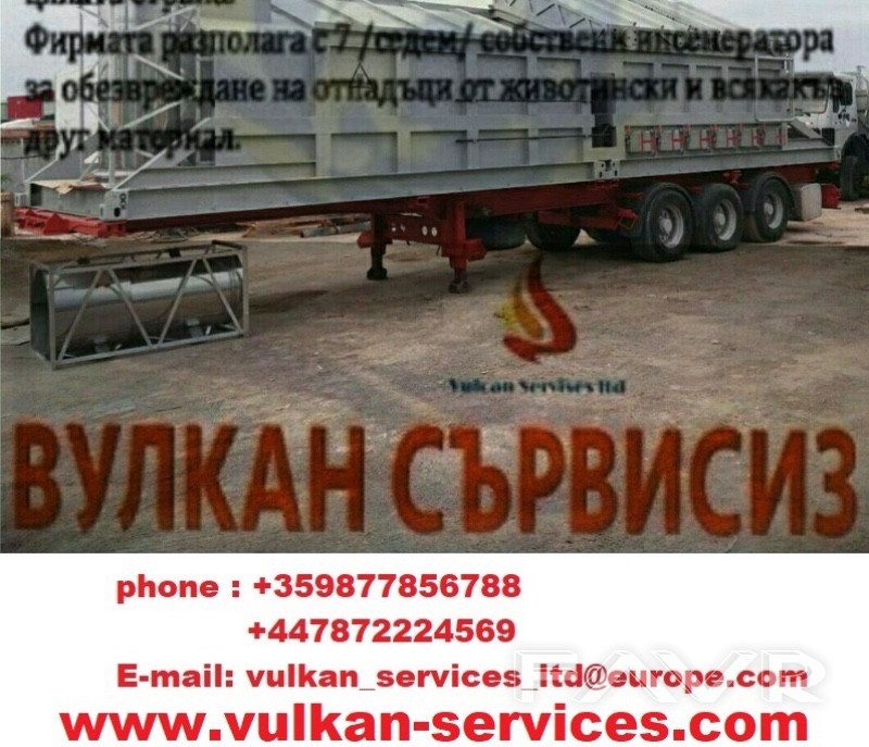 Събиране транспортиране и унищожаване , чрез мобилни инсинератори , СЖП категории 1,2 и 3.