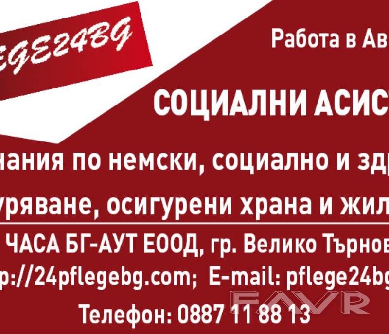 Работа за социални асистентки със слаби познания по немски език за придружаване и гледане на възрастни и болни хора в Австрия.