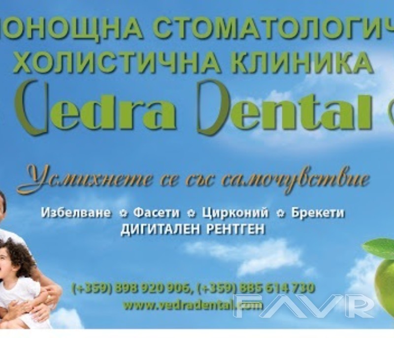 “Ведра Дентал” е стоматологична клиника с денонощни зъболекари в град София, ж.к. Банишора, ул. Охрид 21. Разполагаме с нужното оборудване за частично или цялостно лечение и изграждане от всякакъв тип протези, изграждане на отделен зъб, поставяне на брекети за възрастни и деца и други. Някои от услугите, които предлагаме са в областите на венци и зъбен камък, кариесология, ендодонтия, неподвижна и подвижна протетика и други.