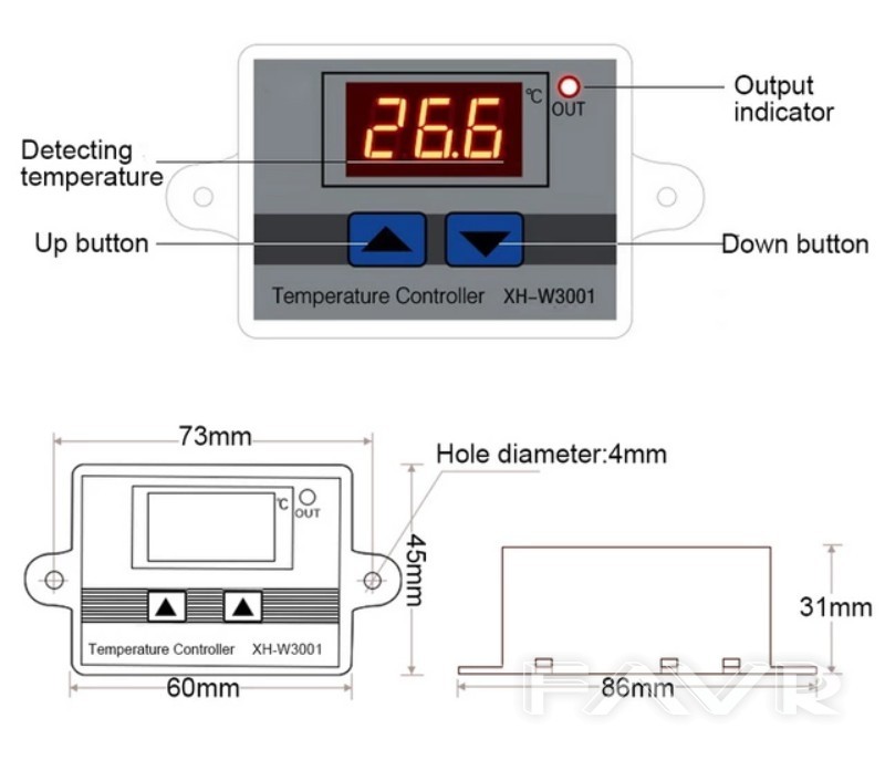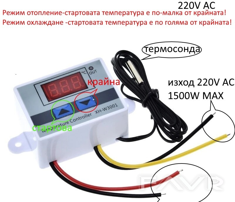 Термостата има само два бутона, изведени кабели вход/изход, с елементарна настройка на параметрите и свързване. Диференциална разлика настройка на ниска и висока температура директно от бутоните със задържане:. Ляв бутон за настройка температура за включване