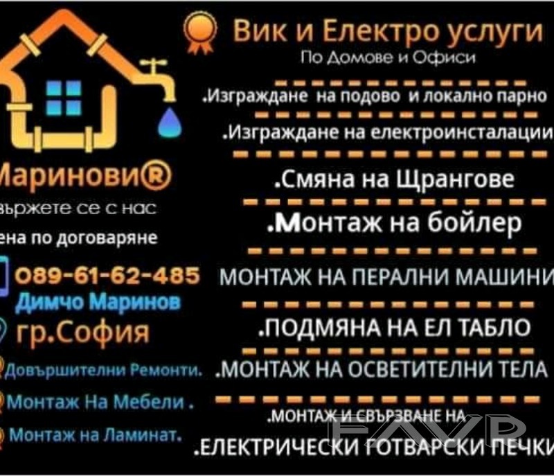 ✔️ВиК и Електро услуги ☎️ Viber тел. 0896162485 Димчо Маринов