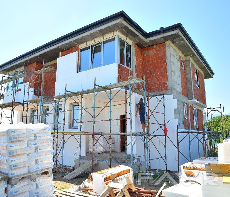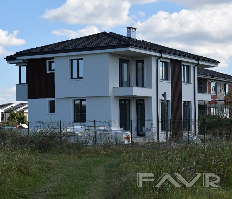 Къщите се издават полуобзаведени, 82мм. Rehal PVC с троен стъклопакет 42мм., блиндирана входна врата.